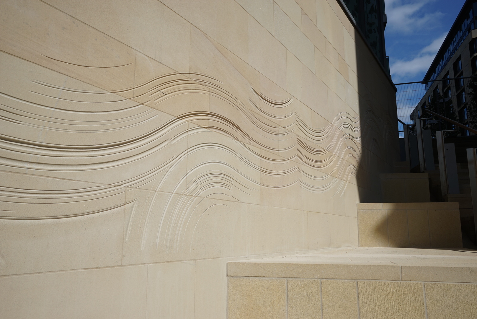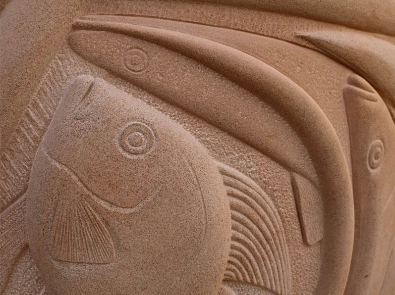 River.Sandstone bas-relief, approx. 3.5x5m. St Paul’s Place, Sheffield. 2016.