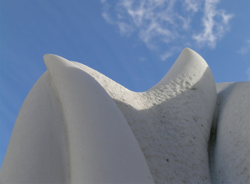 Fire and Water, 1998. 2m high, Carrara marble. Leamington Spa Fire Station. Assisted by Graeme Mitcheson. Commissioned by Warwickshire Fire and Rescue Service.