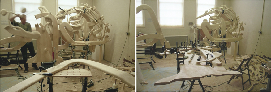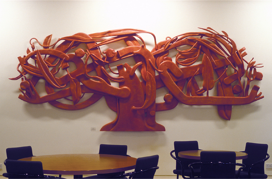 From the Red Earth, 1995. 1.8 x 4.5m, carved and constructed Sycamore wood sculpture. Commissioned by the Contemporary Art Society for GlaxoSmithKline.