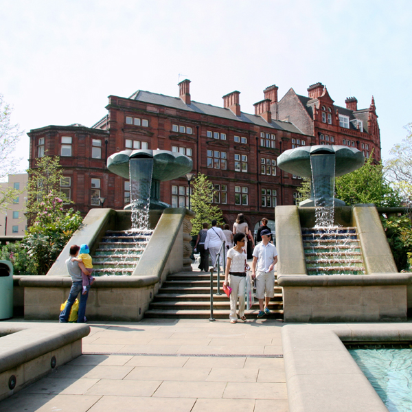 Design of The Peace Gardens, Sheffield, with Brian Asquith, Tracey Heyes, Andrew Skelton, and Richard Watts. Part of The Heart of the City Millennium project. Further area of design and carving: 120m balustrade and 120m stone relief, including 8 weirs. Assisted by Richard Holliday and Harry Gray. National Stone Federation Award 2000; RIBA National Urban Design Award, 1999.